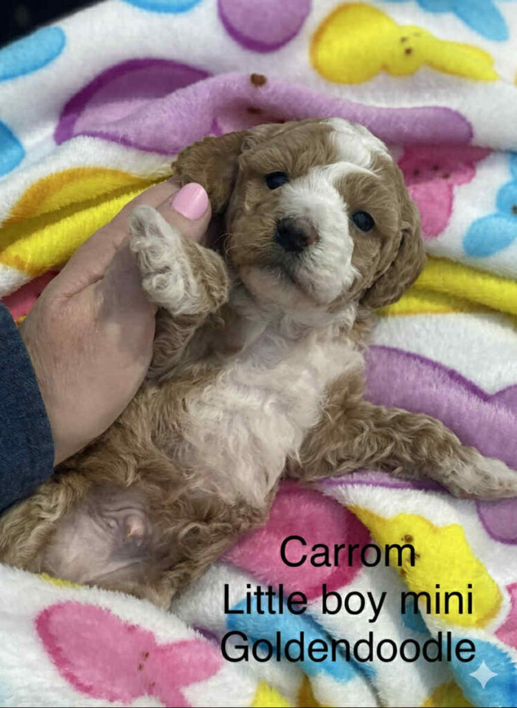 These sweet little baby boys will steal your heart . They are joyful , loving and very smart . The mini Goldendoodle is a perfect choice for a family pet . They enjoy people , playtime and short walks .