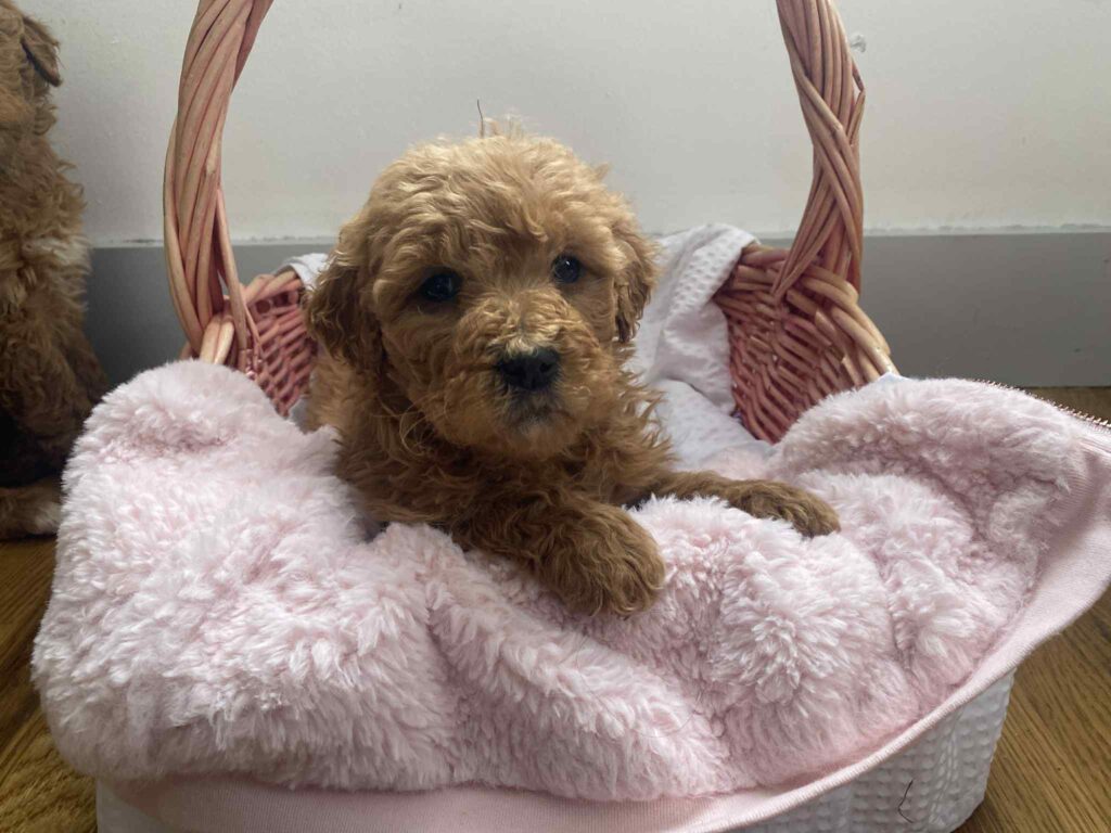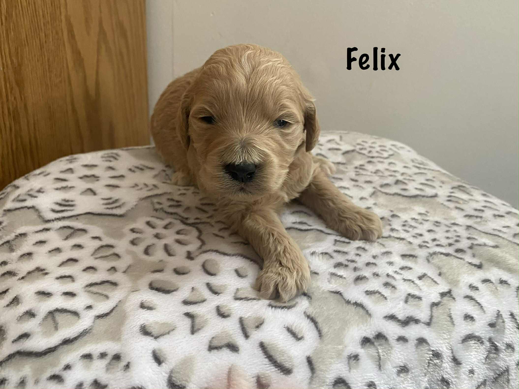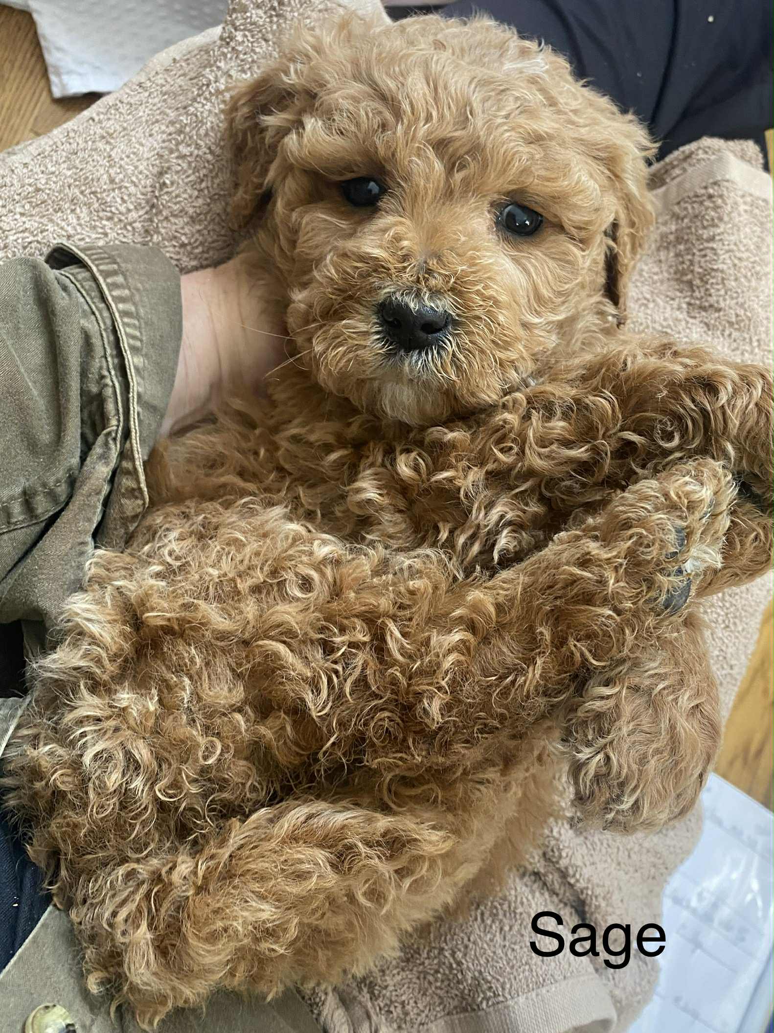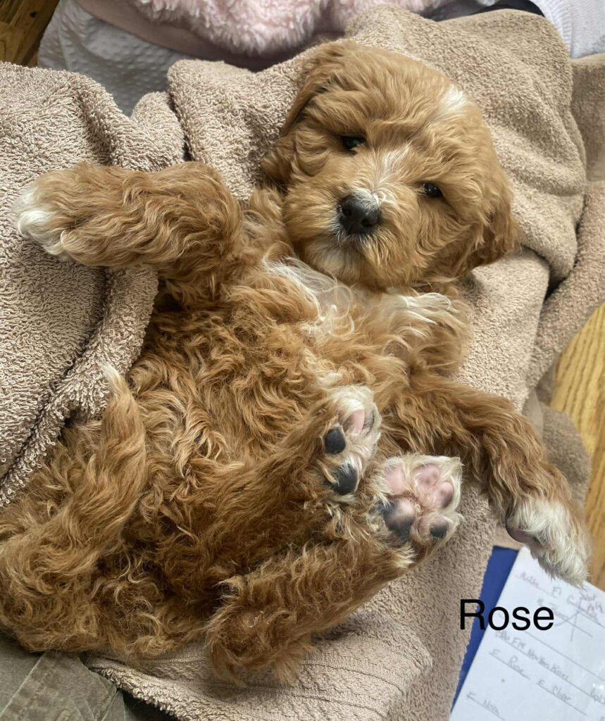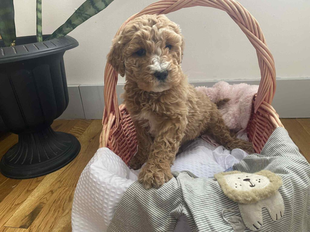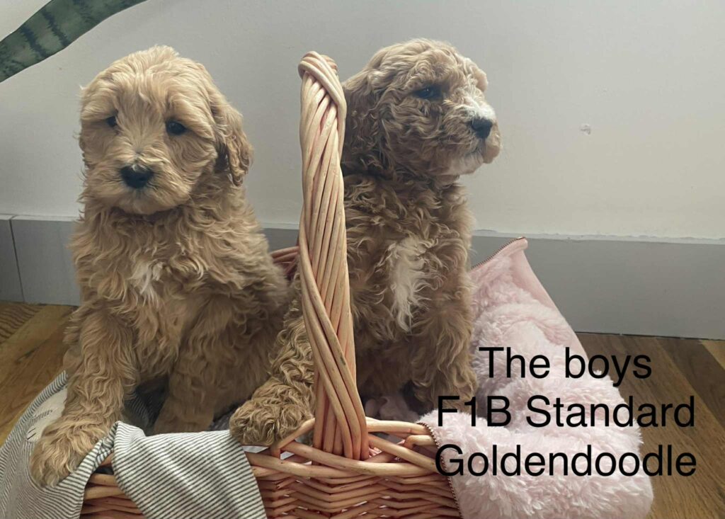 • Mom: April Showers (F1 Goldendoodle) weighs 60 lbs.