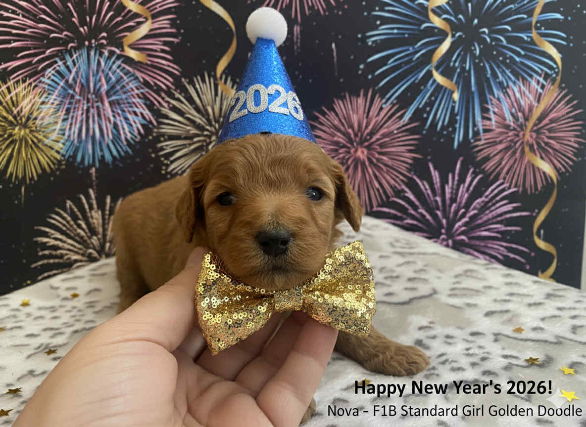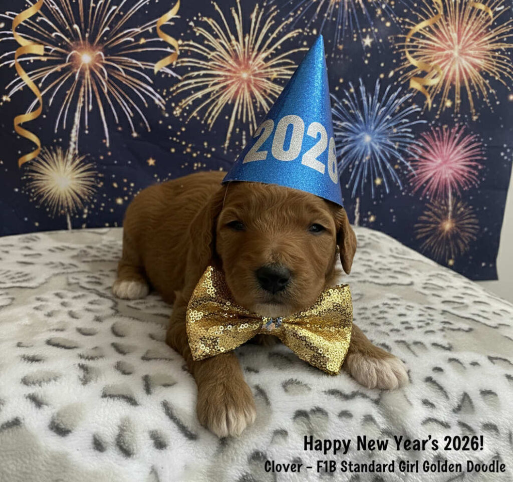 Start the new year with a kiss from a loving puppy! We are thrilled to announce the arrival of our “New Year’s Kisses” litter of F1B Standard Goldendoodle puppies, born just in time for the holiday season on November 24, 2025.