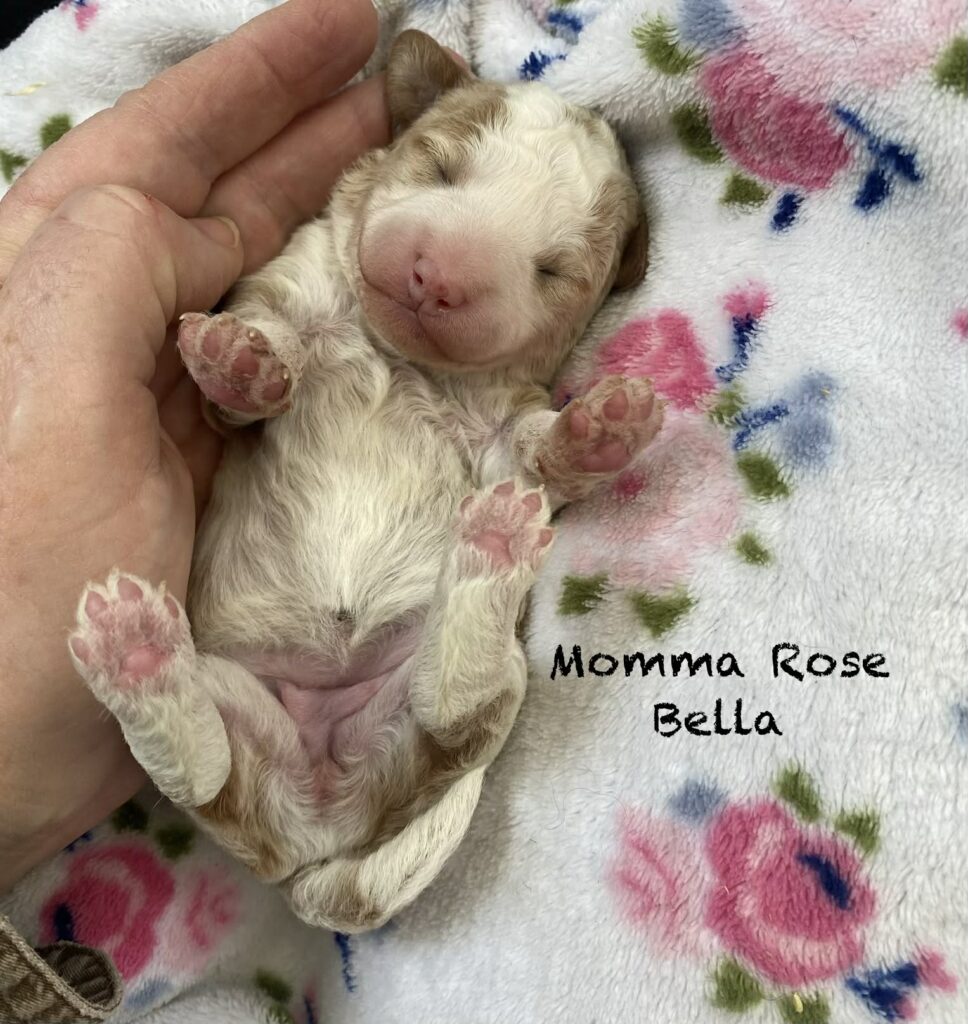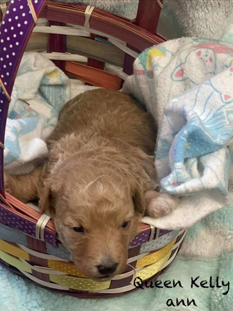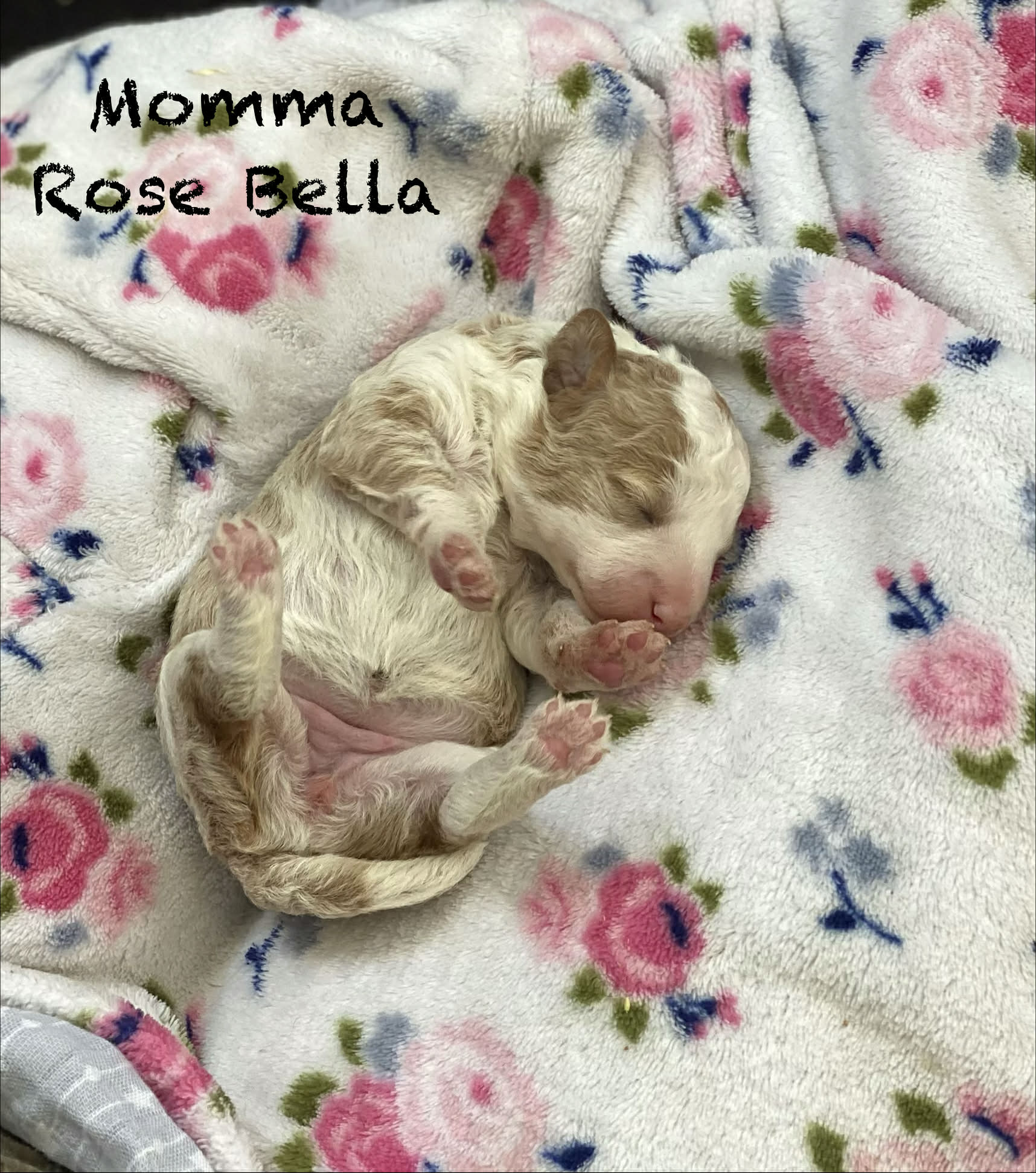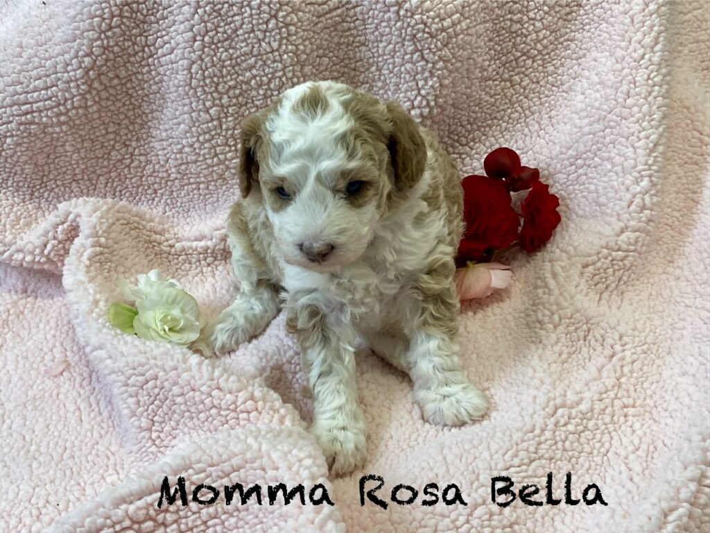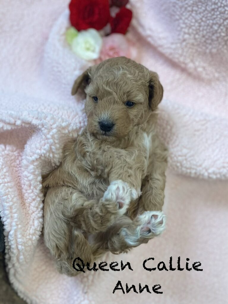 • Dam: Jingles, an F1B Mini Goldendoodle (15 lbs).