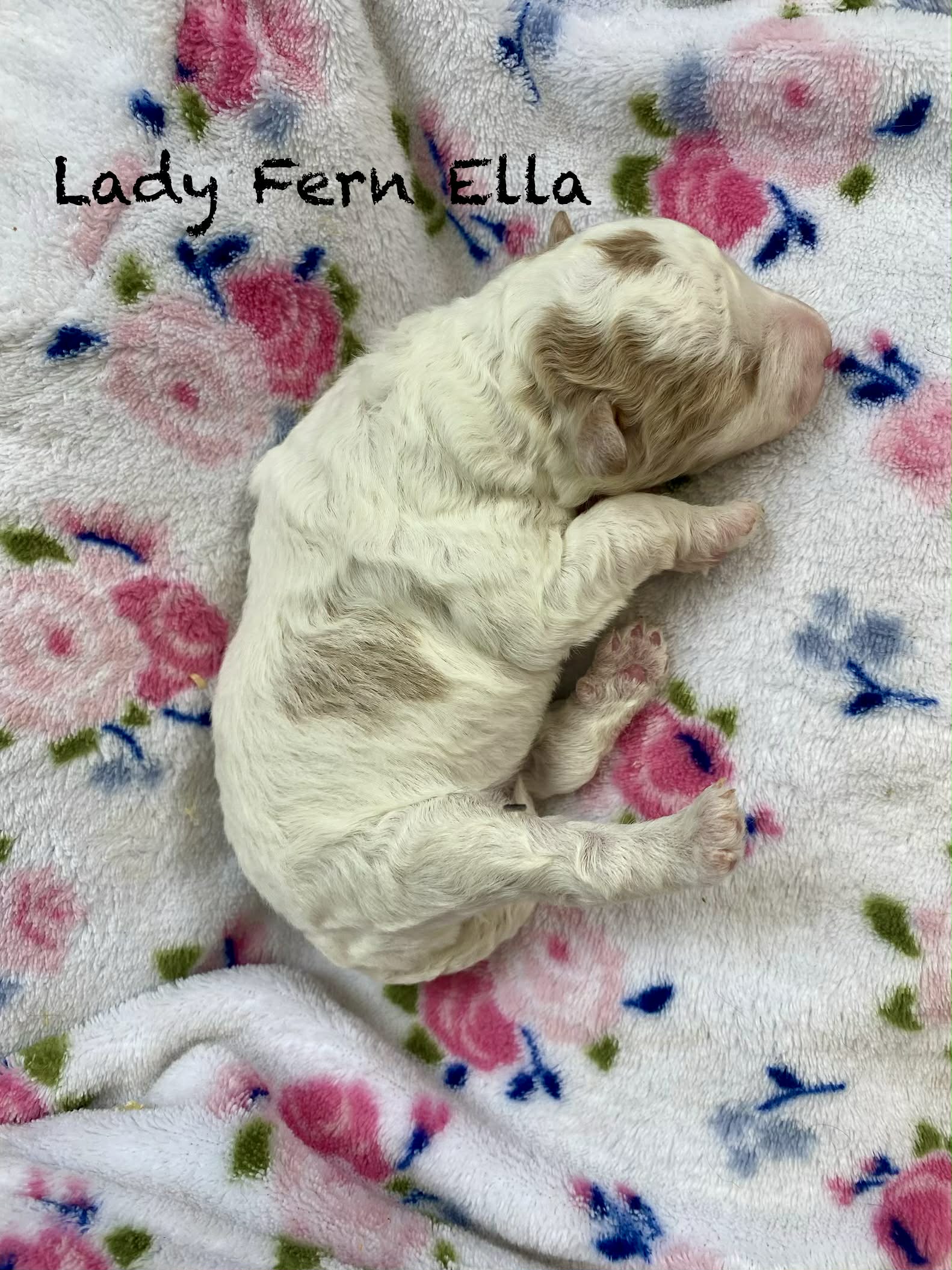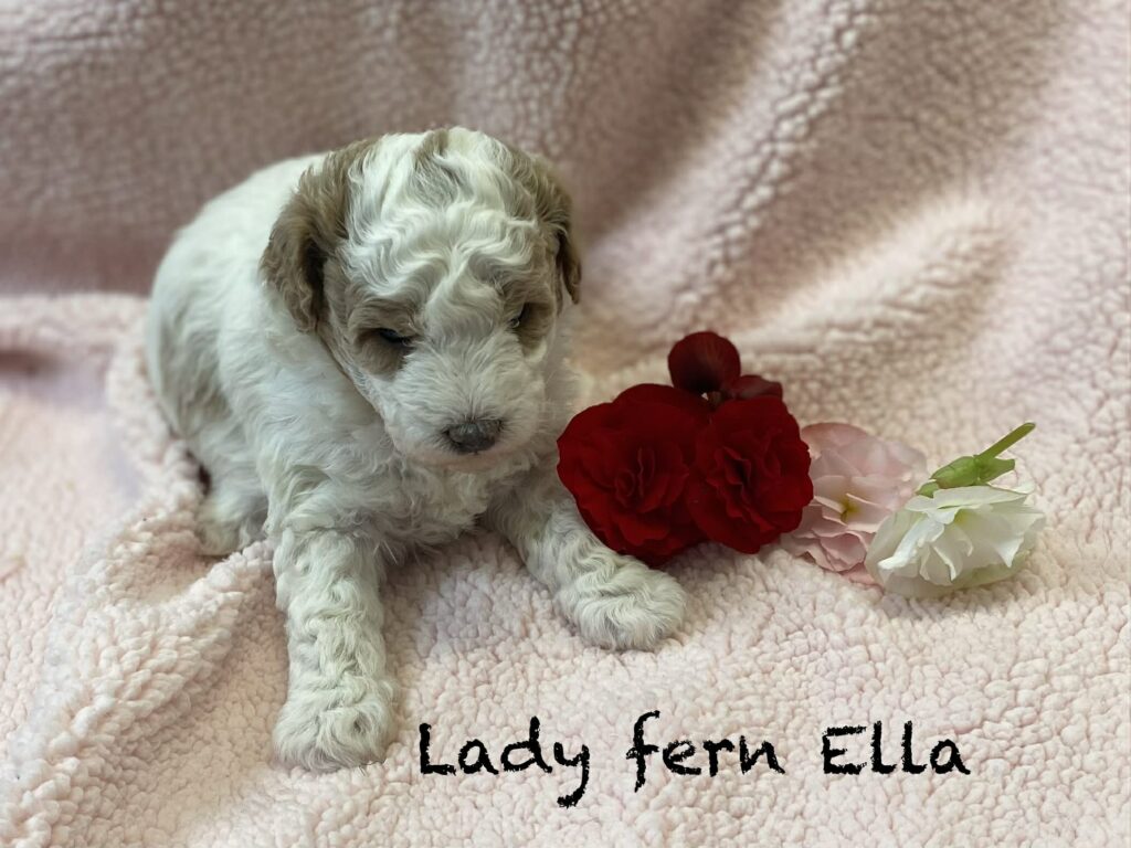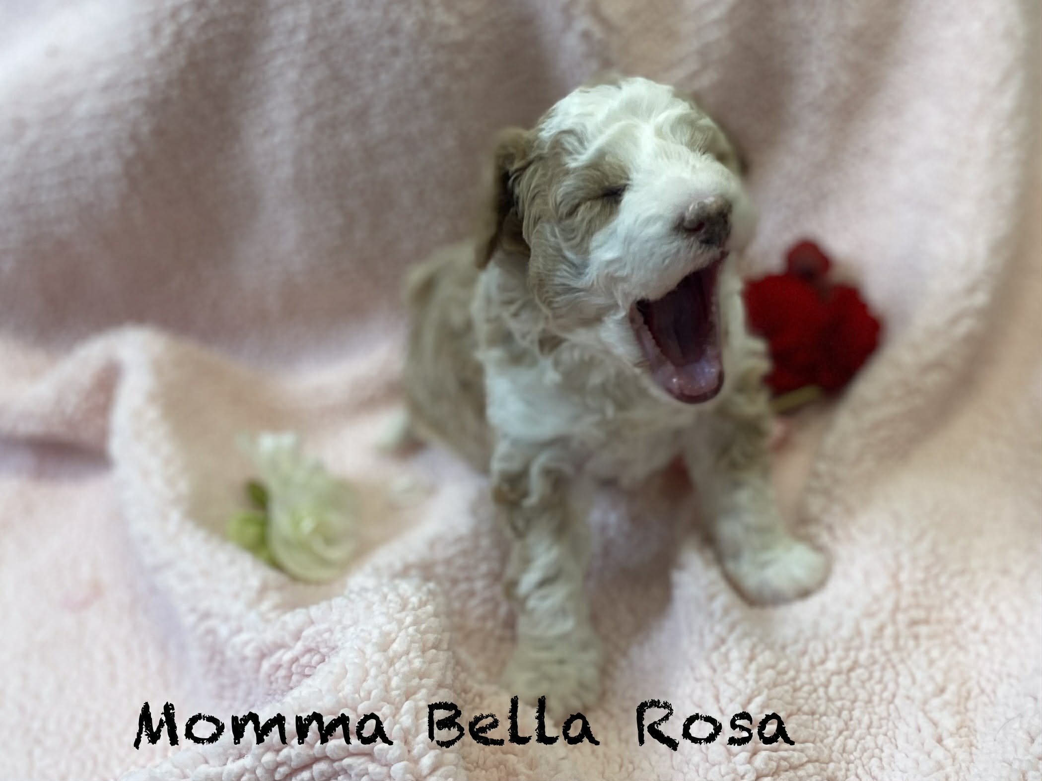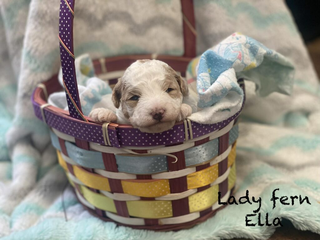 • Dam: Jingles, an F1B Mini Goldendoodle (15 lbs).