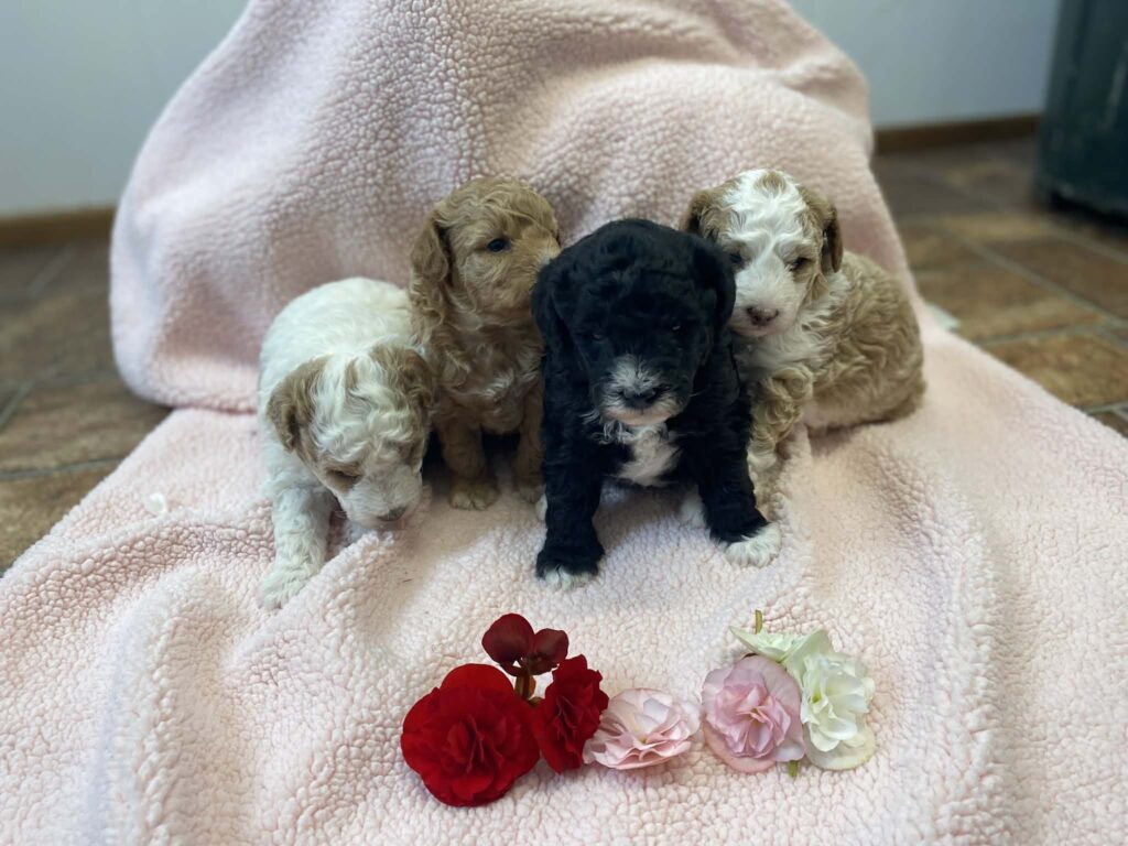 We are overjoyed to introduce our Spring Blooms litter! These F1BB Mini Goldendoodles are the definition of “Teddybear” pups, featuring hypoallergenic wavy coats and those signature sweet personalities.